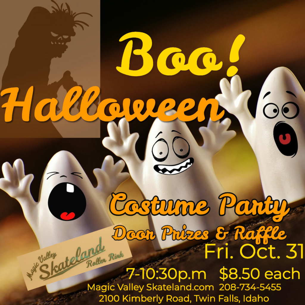 Join us for our annual super-fun costume party. Prizes for best costumes. Everyone receives a door-prize gift. Raffles for new skates and an overnight stay at Jackpot (adult’s only for Jackpot).